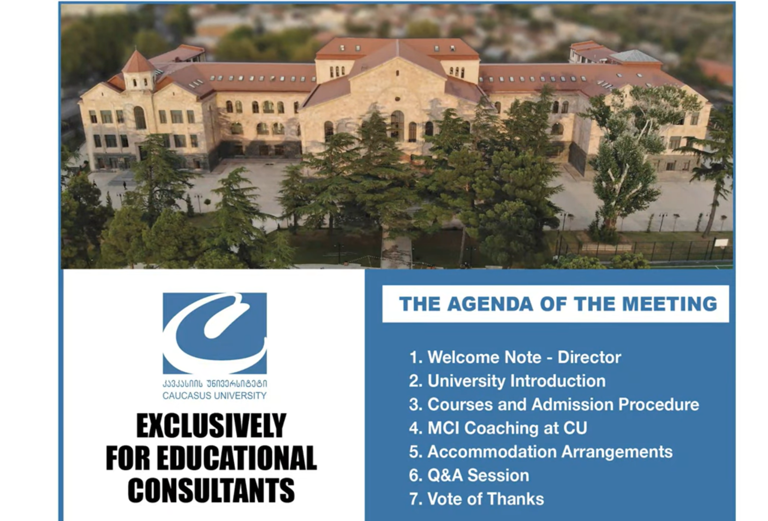The session was then taken over by Miss KETEVAN KARBAIA, the Admission Officer at Caucasus University. The Medical course offered in CU and the admission procedure was explained in detail. The meeting agenda was to educate our participants about the University and the course that is offered.